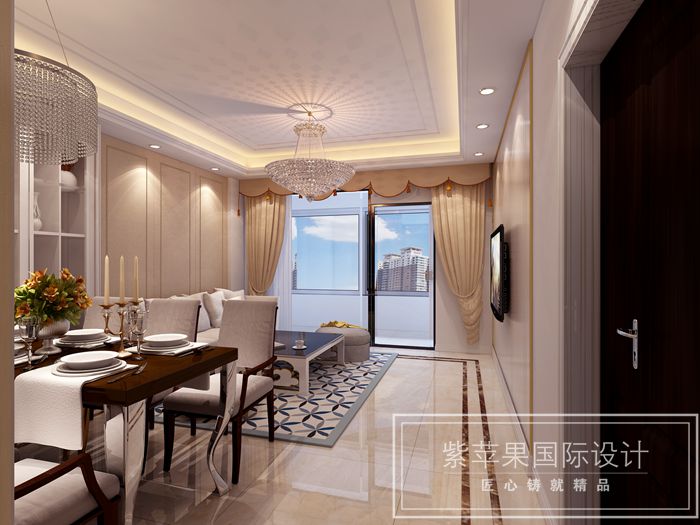 客餐廳:客廳的空間較小,為了使整體感更強且空間上更寬闊,所以選擇三人座。在甲方要求有三個臥室的需要,本案設計師巧妙運用北陽臺及部分廚房空間打造出一個工功能室,使該小戶型完美的蛻變成三室兩廳又滿足眾多需求的一個超高性價比的一個戶型,軟裝的搭配體現(xiàn)出簡單、淡雅、明媚的氣息,讓人感覺分外舒適。