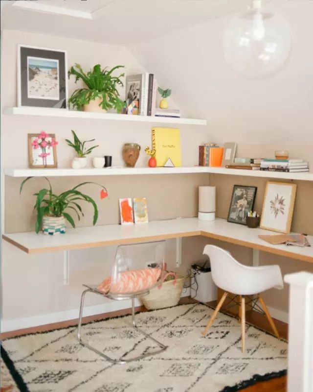 建造這樣的工作區(qū)會(huì)需要大一點(diǎn)的空間,但對(duì)比起專門的書房來說,整個(gè)成本真的會(huì)低很多,而且整齊利落,即是靈感當(dāng)中提到的置物展示空間,又可以玩電腦、做功課和工作,掛墻式的桌面和擱板置物架簡潔而且價(jià)格親民,再配張地毯,整個(gè)位置立刻就亮眼了起來。