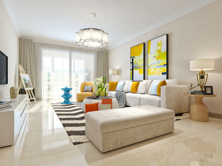 (1)室內配色,最好只有一種主色調,然后選一到兩種輔助色對比色,用來調節(jié)客廳的顏色純度和明度的變化,但是對比色的面積和種類要少,否則顯得又亂又廉價。