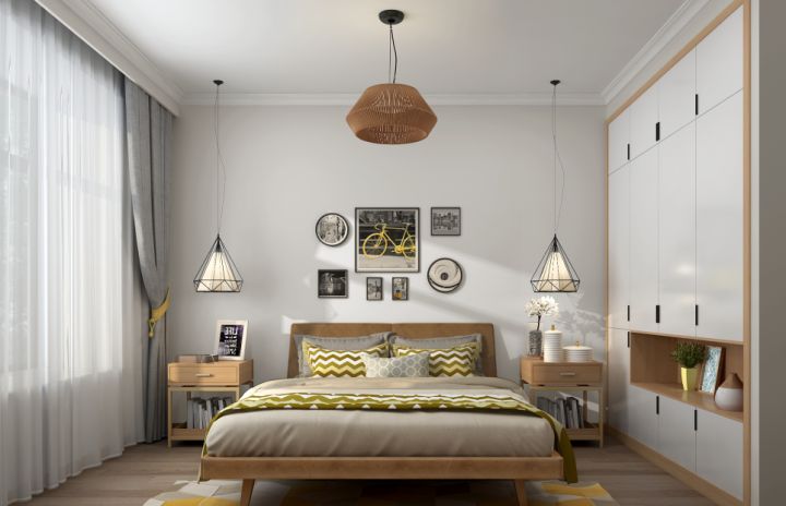(2)臥室寬度在3.2米以內的話建議選擇1.5米寬的雙人床,大于3,5米選擇1.8米的雙人床。