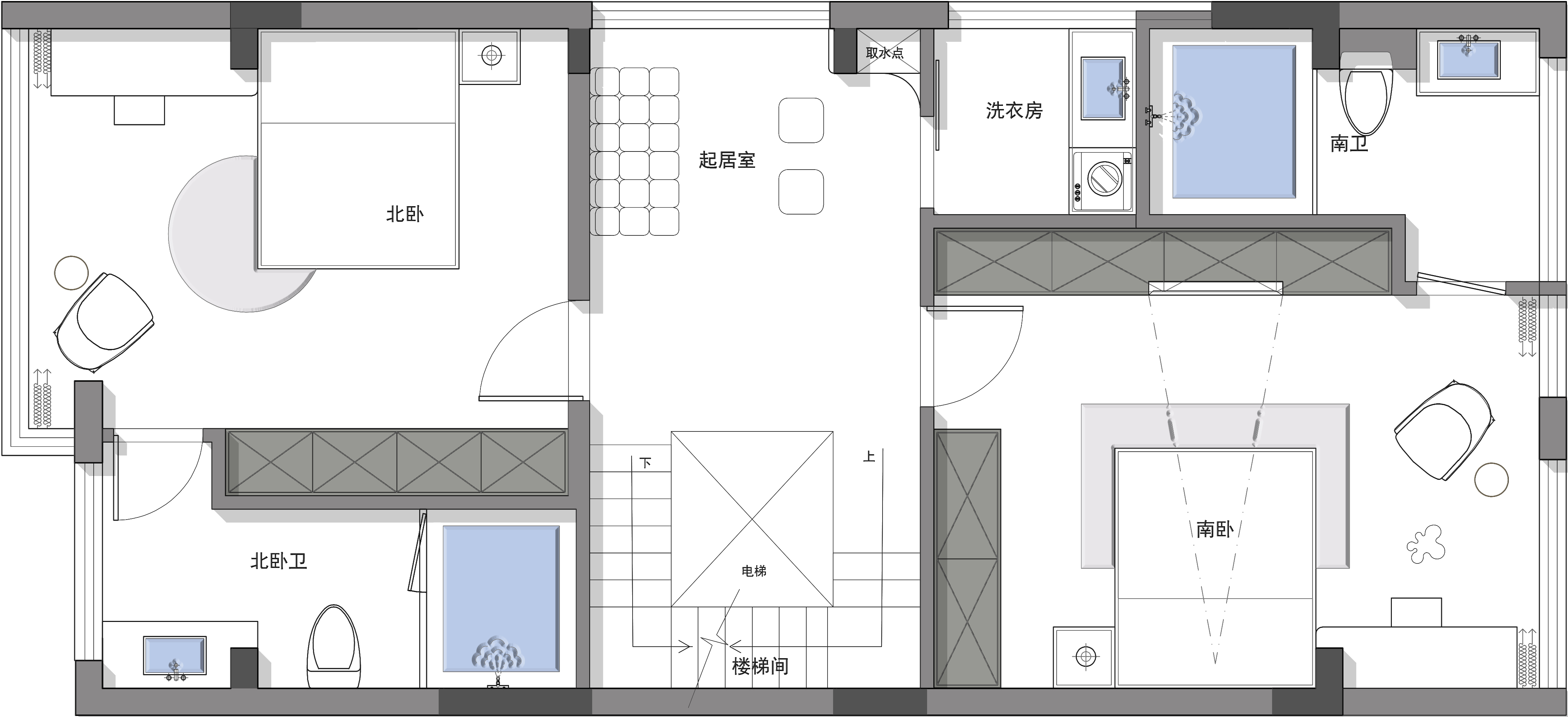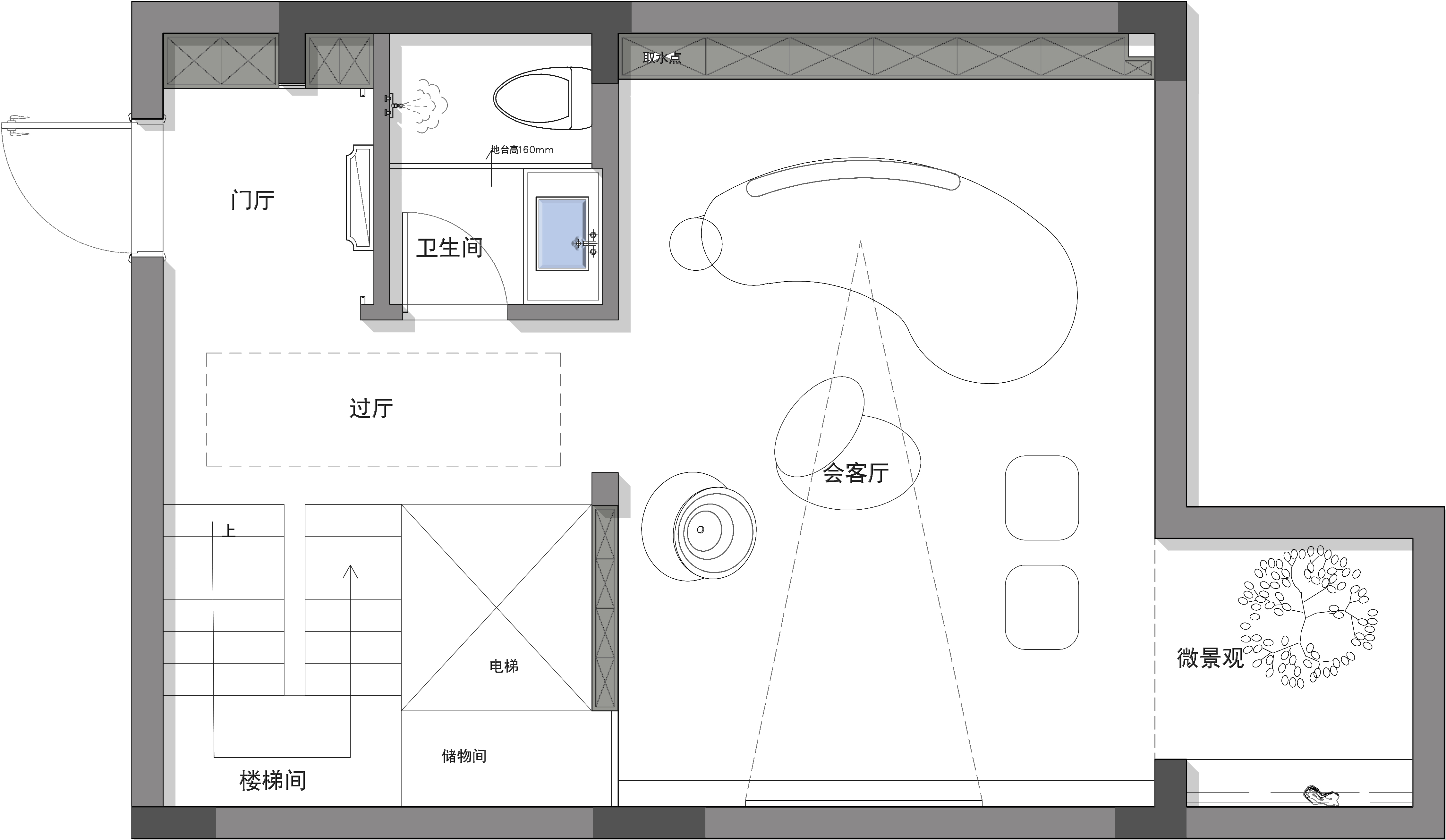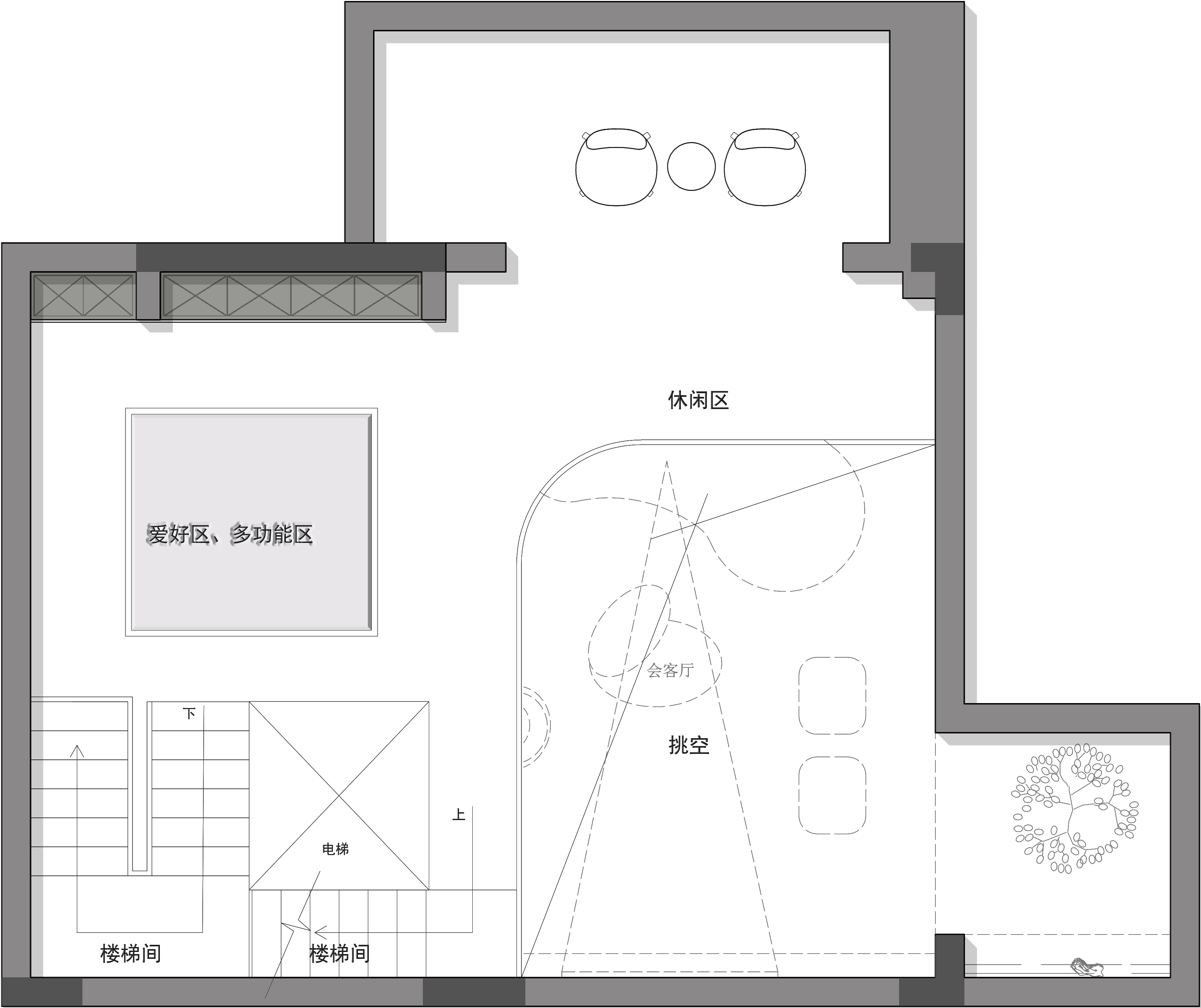 因?yàn)榧依镉欣先撕⒆樱覀冊(cè)谠蓟A(chǔ)上改變了樓梯位置,設(shè)置了電梯方便老人小孩上下樓!