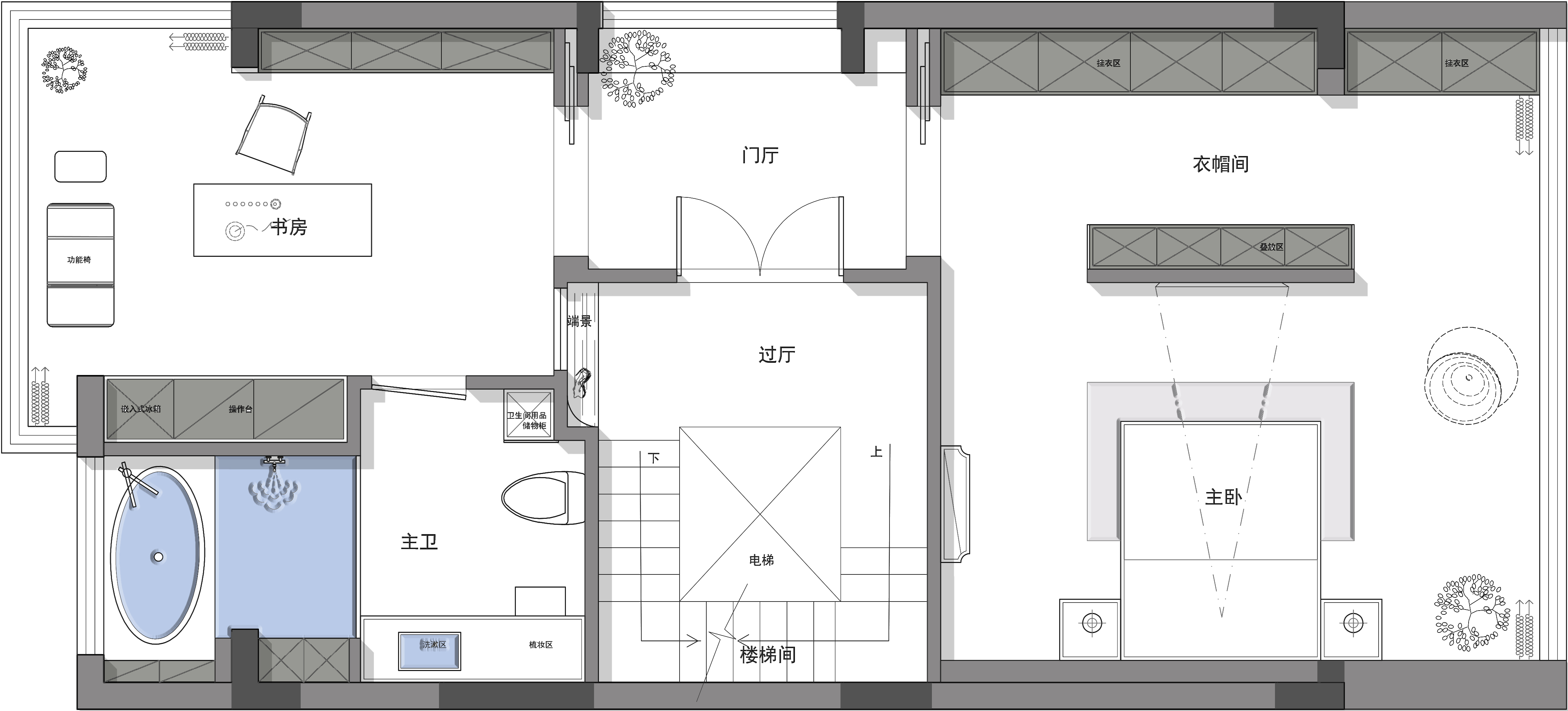 上去二樓是兩個(gè)給老人小孩的臥室,里面都有獨(dú)衛(wèi),品質(zhì)很高!三樓主要是主人區(qū)域,很有儀式感的入戶玄關(guān),整層都給他們用來休息辦公,品質(zhì)非常高,露臺(tái)作為了晾曬區(qū)。