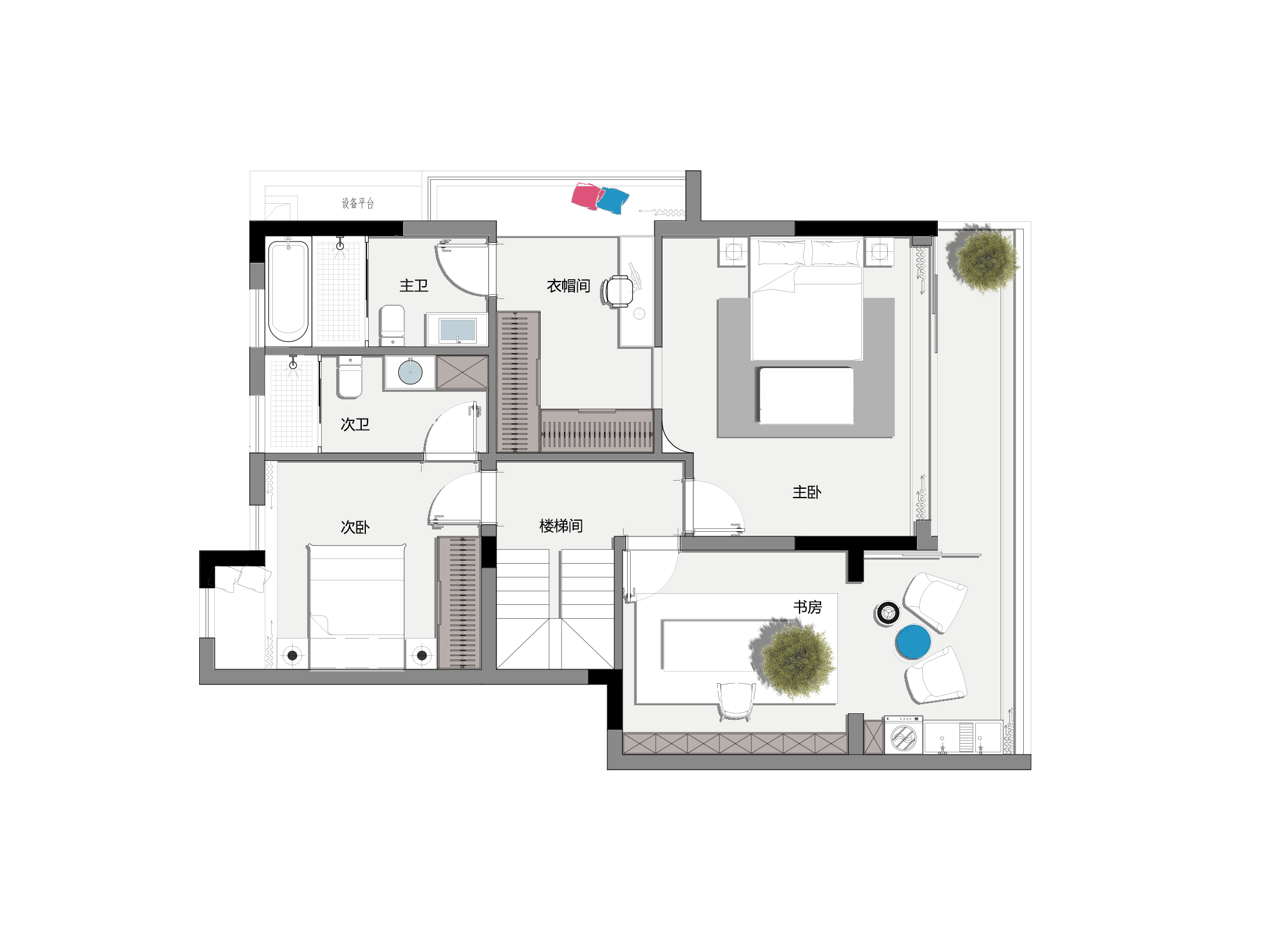 層做了一個主臥大套房,外面半露臺,給主人居住很舒服