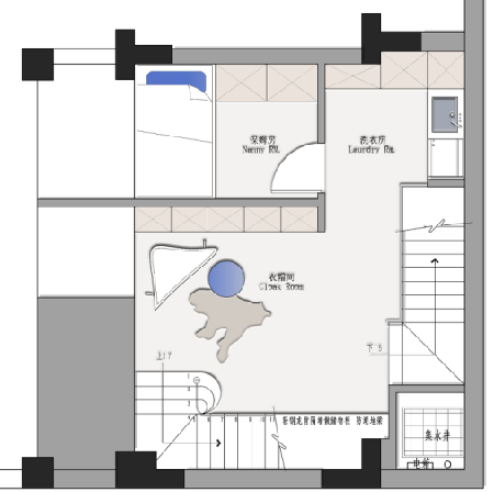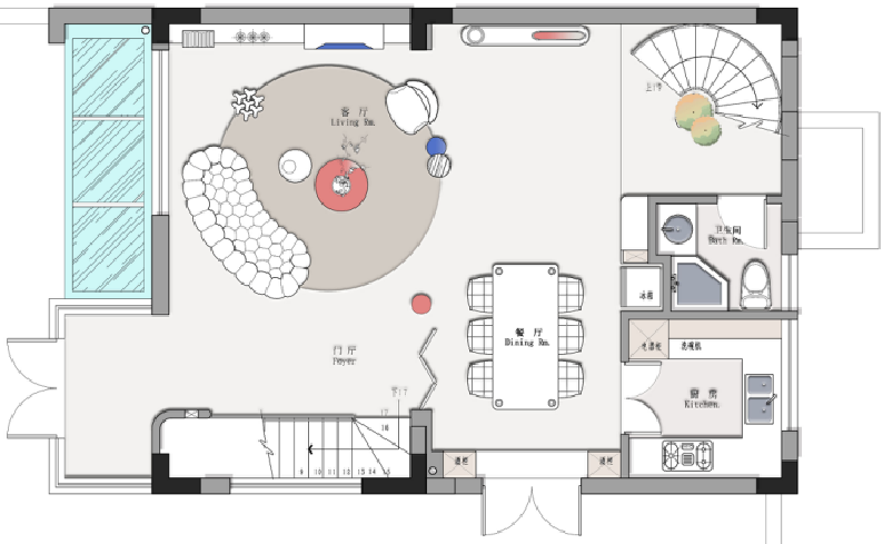 一樓女主人要保留挑高區(qū)域,不打算現(xiàn)澆,一樓設(shè)置了一個(gè)法式旋轉(zhuǎn)樓梯,