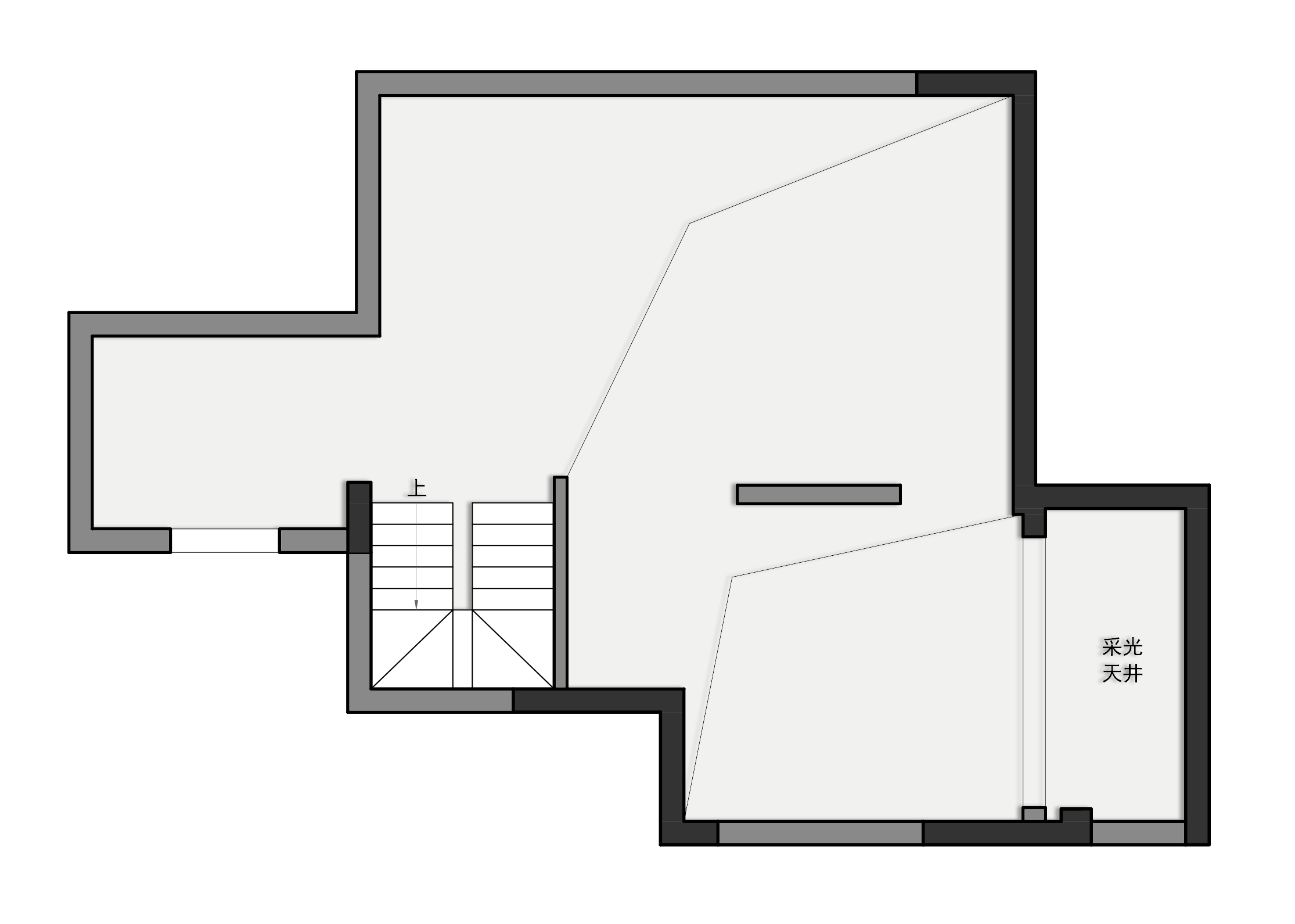 3?負(fù)一層保留了大挑空,結(jié)合少量現(xiàn)澆,把空間變得更方正,利用率更高。將北面采光井也納入室內(nèi)規(guī)劃范圍,難處理的Z字形承重柱用柜子做裝飾,滿足了儲(chǔ)物需求,空間也更加美觀。這個(gè)空間主要作為多功能的書房和儲(chǔ)物間來使用,滿足客戶工作、閱讀、儲(chǔ)物等需求。