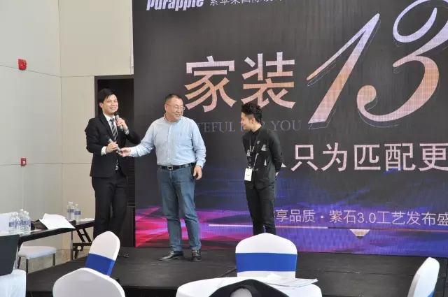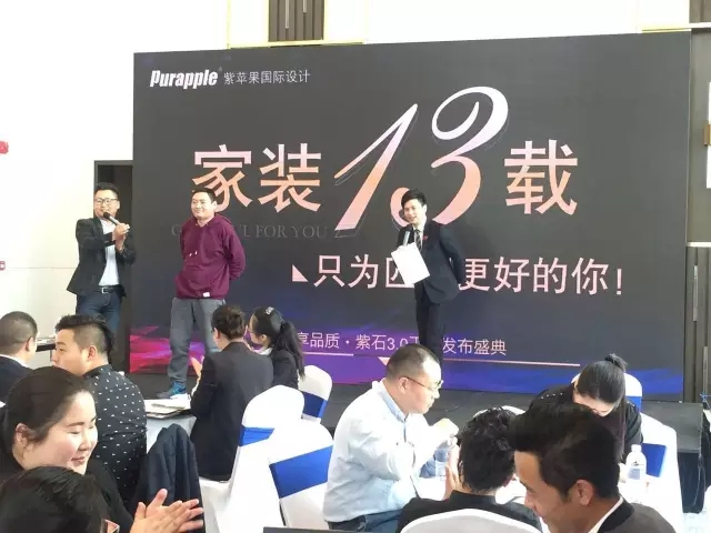 紫蘋果周年慶典,裝修設(shè)計(jì),施工大讓利,直享紫蘋果合作的品牌材料商主材特供價(jià)。業(yè)主紛紛下定訂單,設(shè)計(jì)師和客戶一起上臺(tái)致詞。