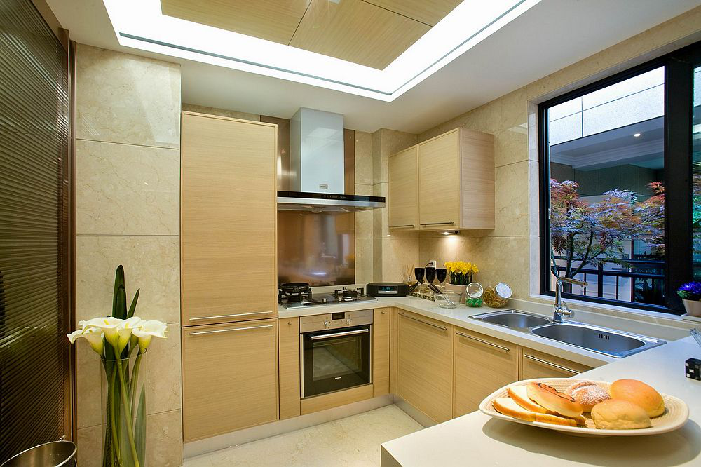 吊柜下方、吊柜和地柜內(nèi)部、天花、烹飪區(qū)都應該安裝照明設備,不要為了節(jié)省電路改造費用而舍棄這些照明,否則會帶來極大不便。天花照明容易在某一區(qū)域留下陰影,從而影響人做飯時的操作,如果是切菜區(qū)域,還存在極大的危險。吊柜下方的照明最好能調節(jié)角度,適合不同做飯人的身高和視線角度。柜子內(nèi)部燈的開關應該和柜門開合相連,使用起來更方便。