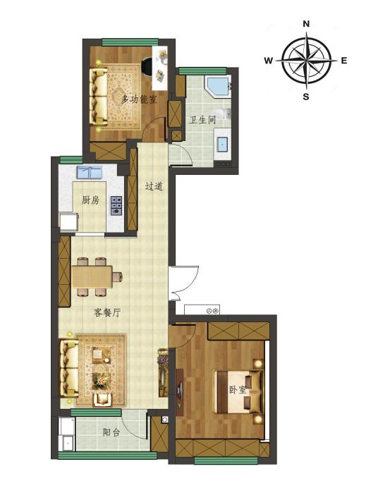 戶型效果圖:這個(gè)戶型大家可以看出來并不是很多,確實(shí)它只有2300px,但是相信大家可以從戶型圖中看出設(shè)計(jì)師還是將很多東西設(shè)計(jì)的很微妙。那么我們?cè)賮砜纯丛O(shè)計(jì)效果圖吧,從里面你可以發(fā)現(xiàn)更多很棒的設(shè)計(jì)感和微妙元素在里面。