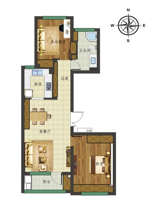 戶型效果圖:這個戶型大家可以看出來并不是很多,確實它只有2300px,但是相信大家可以從戶型圖中看出設(shè)計師還是將很多東西設(shè)計的很微妙。那么我們再來看看設(shè)計效果圖吧,從里面你可以發(fā)現(xiàn)更多很棒的設(shè)計感和微妙元素在里面。