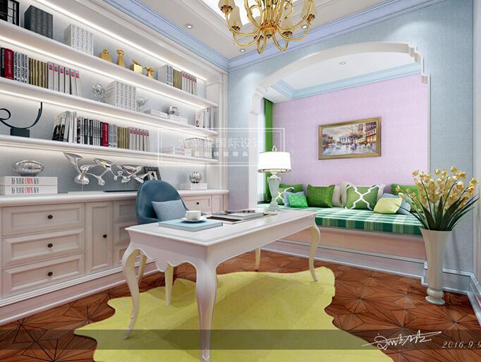 再轉(zhuǎn)角一瞥便是,書香濃濃的書房。書房是智慧和安靜的圣域,白色,海藍(lán)色,深色地板的搭配,讓人很快的安靜下來(lái)去融入書海中,猶如身臨其境,體驗(yàn)在書海中暢游的樂(lè)趣,累了可以有個(gè)軟包沙發(fā)小息片刻。逛完一遍整體空間,像是漫步在高貴的皇宮,像是散步在大海邊的沙灘,像是翱翔在藍(lán)色天空,像是步入那靜謐的后花園。