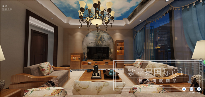 全套的金絲檀木家具與青花瓷的的質(zhì)感完美的融合在一起,設(shè)計(jì)師以獨(dú)特的理念配以藍(lán)色的布藝呼應(yīng)大面積的手繪頂面使整個(gè)空間渾然天成。讓處在鋼筋水泥中的城市人有了心靈的棲息地,身處其中仿若躺在藍(lán)天白云的懷抱中,盡情呼吸。