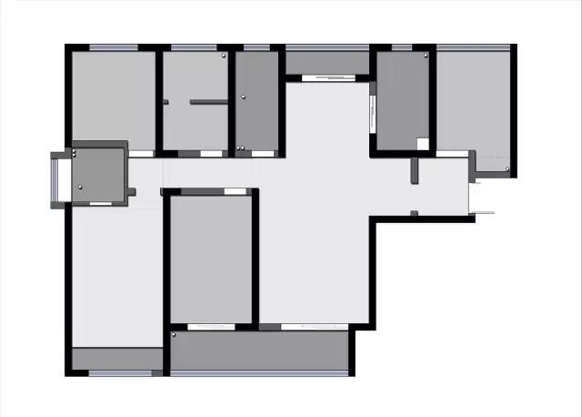戶型整體而言空間較為規(guī)整,南北通透保證了采光和通風(fēng)。但是房屋承重墻較多,限定了每個空間的大小,不便于房屋的格局改變;且房屋拐角較多,面積難以利用。