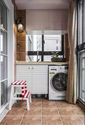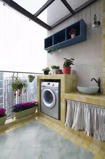 這個(gè)陽(yáng)臺(tái)擔(dān)負(fù)起了洗衣間的功能,同時(shí)也具有盆栽美化的功能。