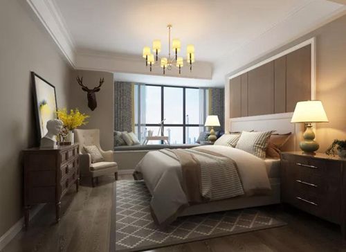 主臥色彩上以平和,古樸色系帶來溫馨關(guān)懷的感覺,柔和臺(tái)燈營(yíng)造靜謐的休息氛圍,又讓人感覺溫暖而不孤單,木質(zhì)的清香深沉,在棉麻床品的柔軟中,營(yíng)造出一種寧?kù)o致遠(yuǎn)的閑適
