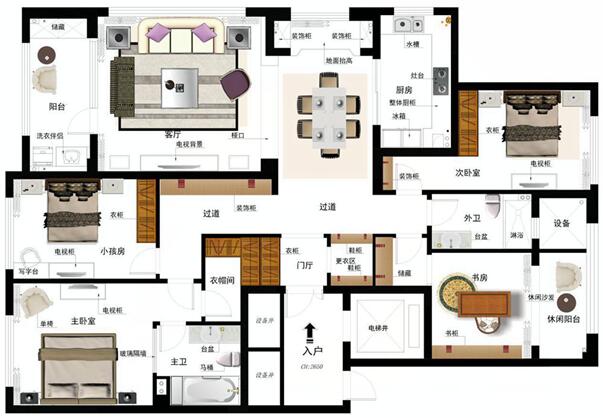 業(yè)主的需求:對(duì)功能要求比較全(獨(dú)立書房、衣帽間,儲(chǔ)藏室等),且在滿足功能的前提下,首先通過(guò)對(duì)整體空間的局部改造,是整體布局更趨合理化;淺色調(diào)為主,富有家的溫馨。