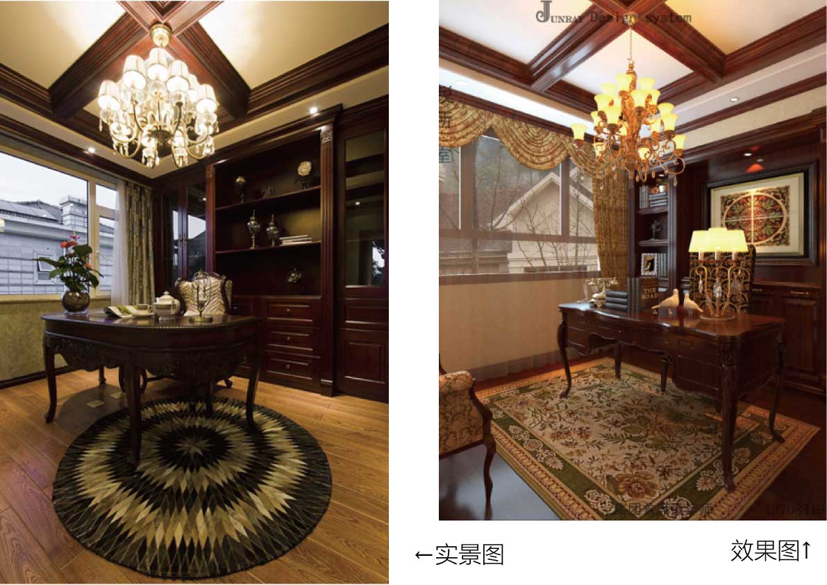 古典氣質(zhì)濃厚的書房設(shè)計,彰顯大家風(fēng)范。品質(zhì)實木的桌椅及書柜,華麗莊重的吊燈,搭配蒙上一層歷史氣息的裝飾物,加上一塊時尚地毯,將書房空間的品質(zhì)大氣凸顯得淋漓盡致。