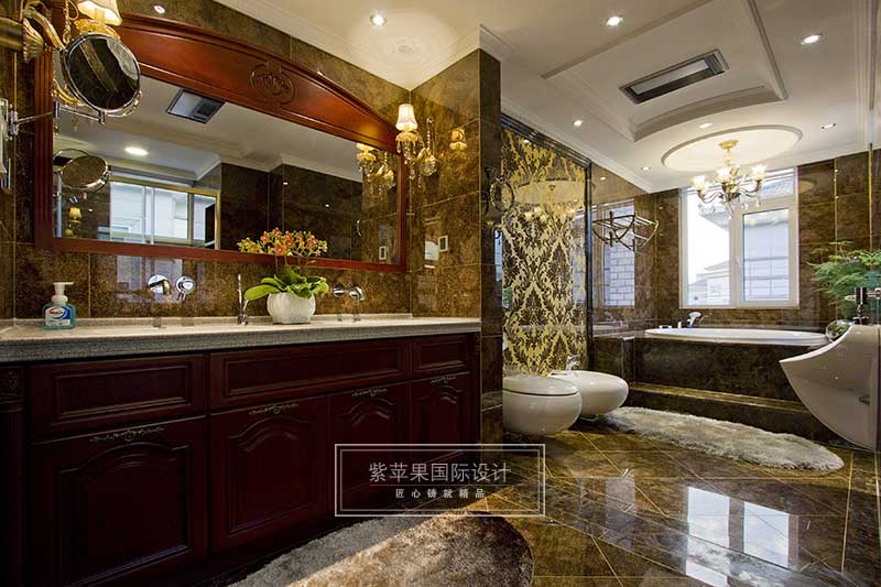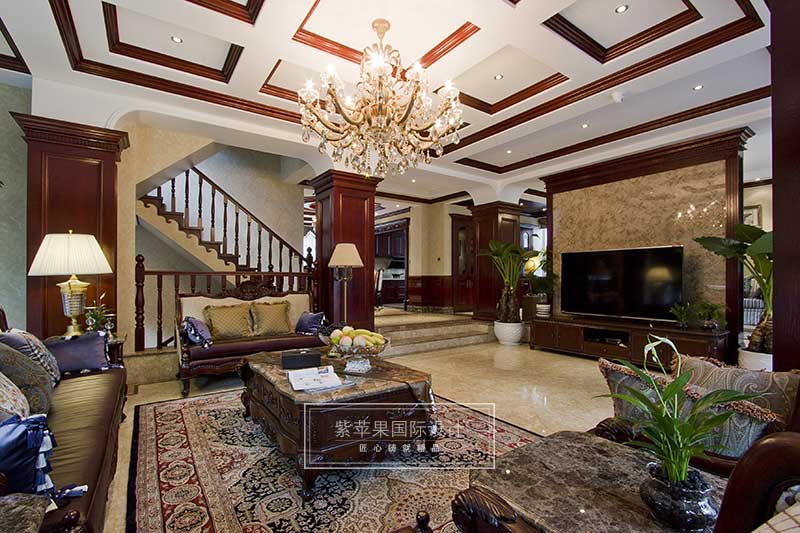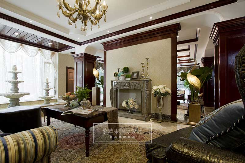 空間框架繼承了實木材料的古典美,玻璃,石材等大面積的運(yùn)用,塑造了經(jīng)典西式設(shè)計。