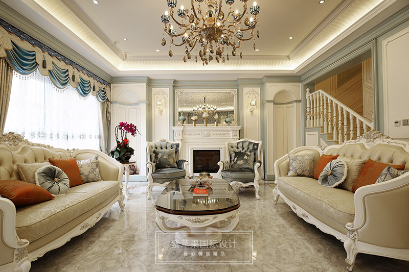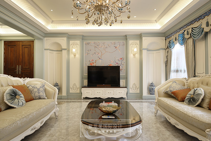 開放式的空間結(jié)構(gòu)、隨處可見的花卉和綠色植物、雕刻精細(xì)的家具……所有的一切從整體上營造出一種田園之氣。Tiffany藍(lán)的純粹,靈動,浪漫又優(yōu)雅,讓很多為之癡狂,設(shè)計(jì)師將它融入在空間里,在白色墻面,白色家具的襯托下,顯得空間清澈純凈,如絲般流動柔滑,一股浪漫的氣息在空間里肆意流轉(zhuǎn)!
