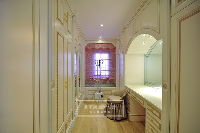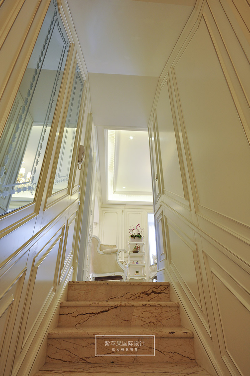 過道處的細(xì)節(jié)處理上,制作工藝清細(xì)考究,在壁燈柔美燈光的映襯下,造舊白的色澤十分干凈,簡單不失高雅氣息。簡潔自然的線條勾勒出過道空間的浪漫典雅。
