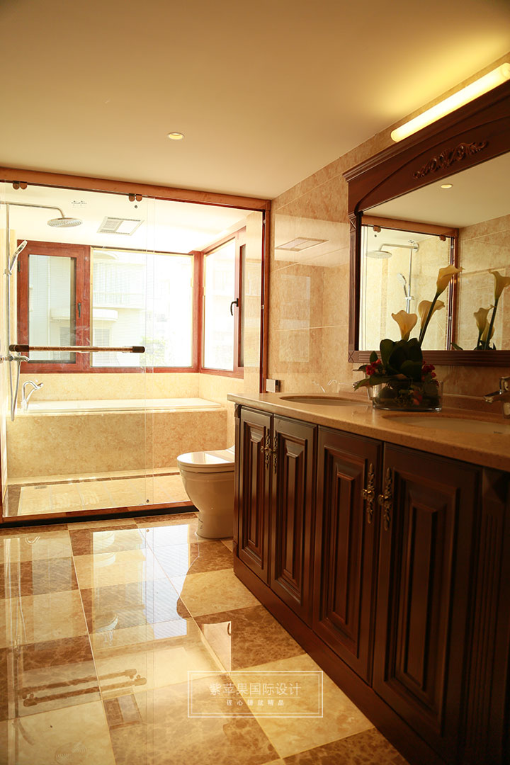 衛(wèi)浴室空間通透,采光好,造型上簡約,不失精致。古典與現(xiàn)代的結合,設計師以簡潔的表現(xiàn)形式來滿足人們對空間環(huán)境那種感性的、本能的和理性的需求。