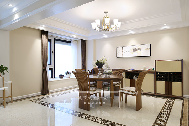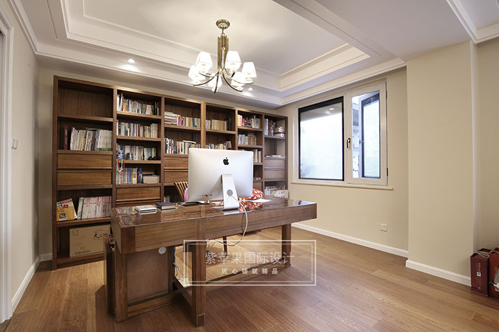 溫暖棕色的書桌,書柜,奠定空間簡(jiǎn)約,自然的基調(diào),客廳,餐廳,書房均采用了款式一致的吊燈,優(yōu)美的造型,柔和舒適的光線,讓空間更具優(yōu)雅,美感。