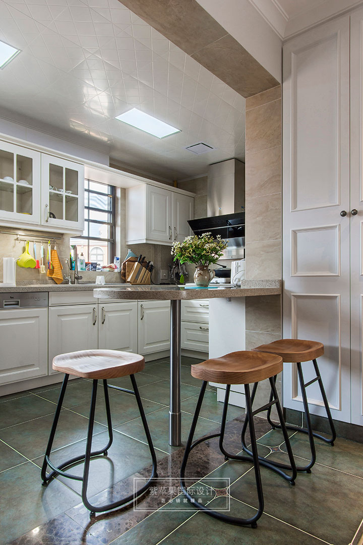廚房是體現(xiàn)居家品質(zhì)的重要空間。在本案中,廚房本連接一個(gè)生活陽臺(tái),但是應(yīng)業(yè)主對廚房空間“寬敞”的需求,設(shè)計(jì)師將生活陽臺(tái)進(jìn)行拆除,納入廚房空間,同時(shí),設(shè)計(jì)師對廚房采用開放式廚房設(shè)計(jì),并在廚房和餐廳間做了一個(gè)小吧臺(tái)的設(shè)計(jì),讓餐廳廚房聯(lián)通,使得整體空間通透關(guān)聯(lián),讓餐廳也有自然光線注入,更顯寬敞明亮。