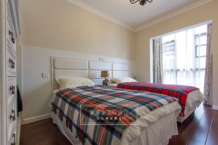 老人房采用分床設(shè)計(jì),充分為兩位老人營造良好睡眠條件,而在不需要分床的情形下,兩床還可合并為一個(gè)床,而背景墻上還預(yù)留了電源插空,滿足日常生活需求。