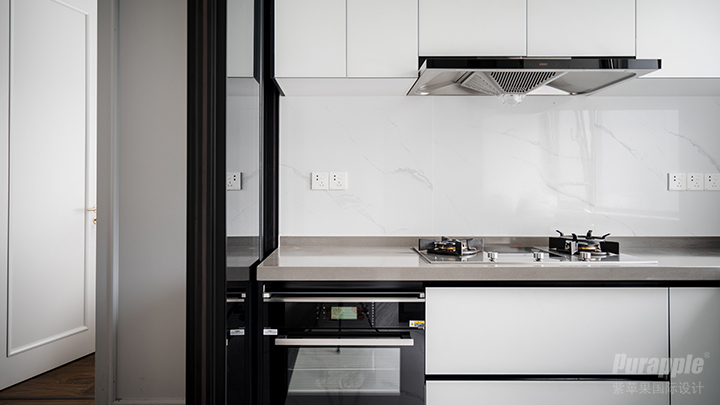 廚房做隱藏式的櫥柜設(shè)計(jì),這樣不僅有寬大操作臺(tái)面及多儲(chǔ)物空間還能兼顧美觀性和實(shí)用性。