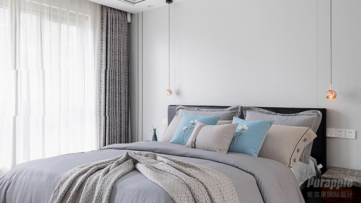 本案主要以清新留白為主要設(shè)計(jì)手法,通過(guò)墻頂面線條勾勒出獨(dú)特的造型使整個(gè)空間不單調(diào)層次感強(qiáng),墻面留白加上裝飾畫(huà)的點(diǎn)綴賦予較強(qiáng)的視覺(jué)沖擊,整體色彩搭配溫馨柔和又帶有愜意的感覺(jué)。