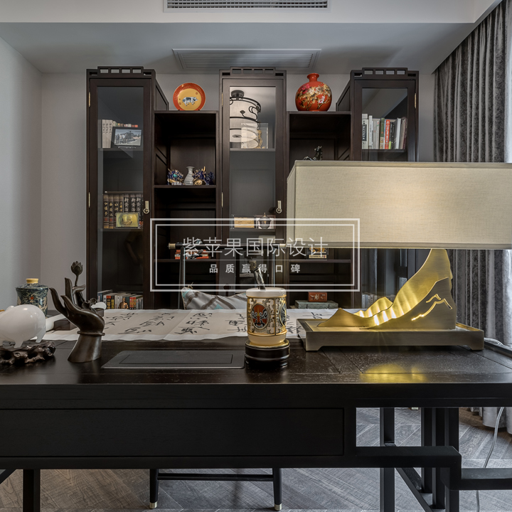 胡桃色與高級(jí)灰的主色與次色相互交映,碰撞出書房內(nèi)獨(dú)有的氛圍。