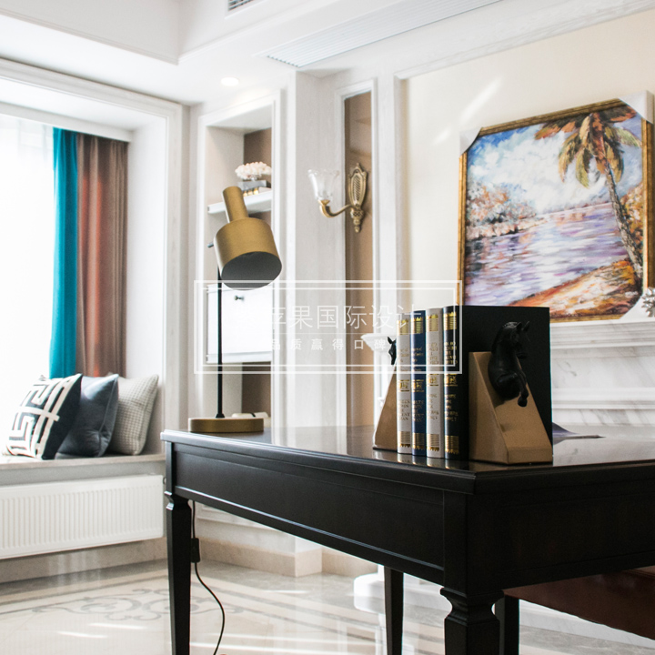 書房內(nèi)給人一種明亮而恬靜的感覺,墻壁上油畫的點綴,簡單卻又不失特色,更具美式氣息。