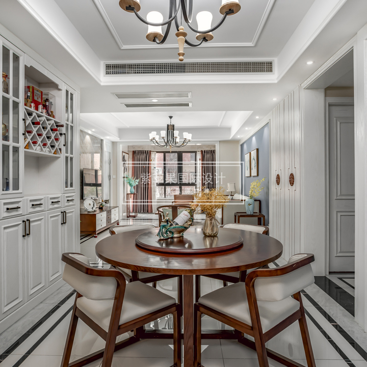 本案以“韻”為題,將現(xiàn)代元素和傳統(tǒng)元素結(jié)合在一起,以現(xiàn)代人的審美需求來打造富有傳統(tǒng)韻味的事物, 家居色彩明亮,結(jié)合了現(xiàn)代風格,使人耳目一新,彰顯出浪漫的生活氣息。