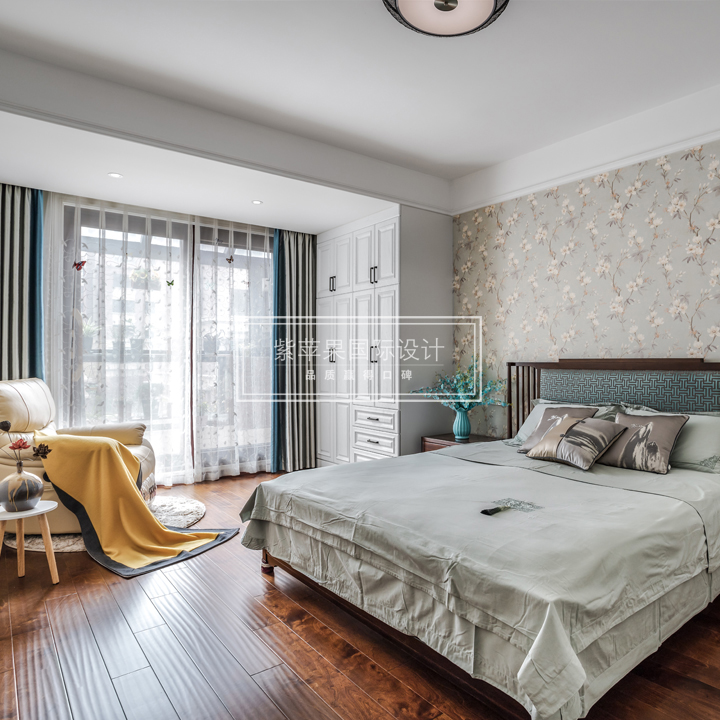 臥室以底蘊深厚的傳統(tǒng)文化為出發(fā)點,在繼承與發(fā)揚的基礎上,適當融入簡練的現(xiàn)代設計語言,從而給臥室注入了新的氣息,使之變得更加簡約和實用。