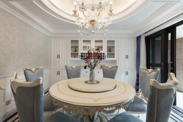 燭臺樣式的吊燈,對稱的象牙白餐邊柜仿佛耳邊響起的是小提琴的優(yōu)雅獨奏。