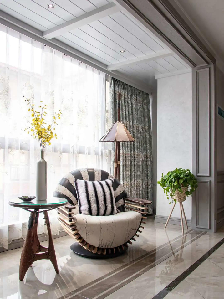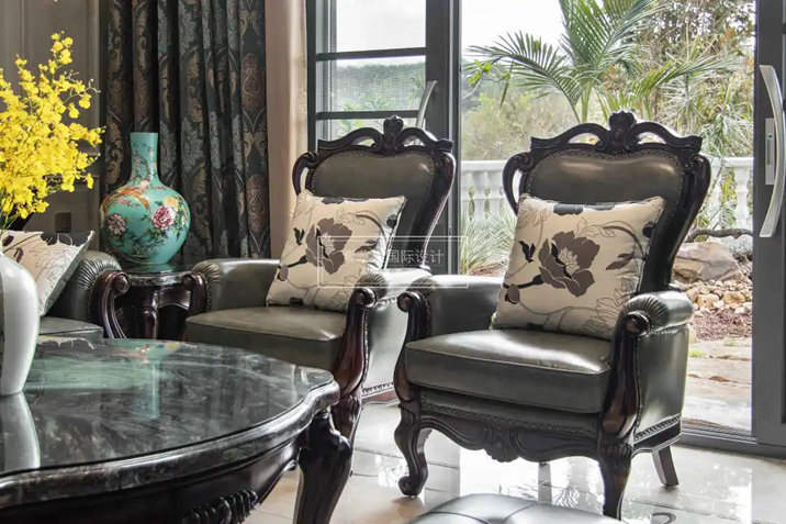 大量木飾面和石材的裝飾,新古典元素的灰調皮質沙發(fā),模仿動物形狀的家具腳腿造型,用現(xiàn)代人生活的審美做設計,讓美式風格的歷史感,也充滿了現(xiàn)代生活的精致與個性。