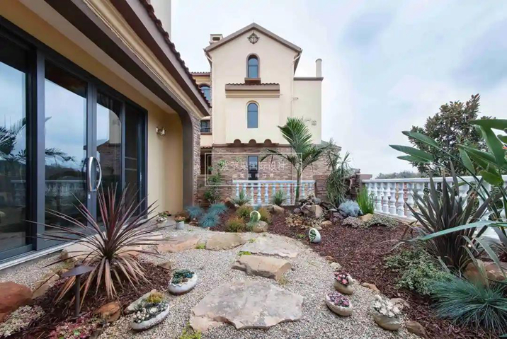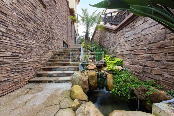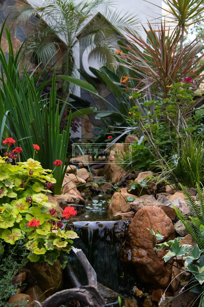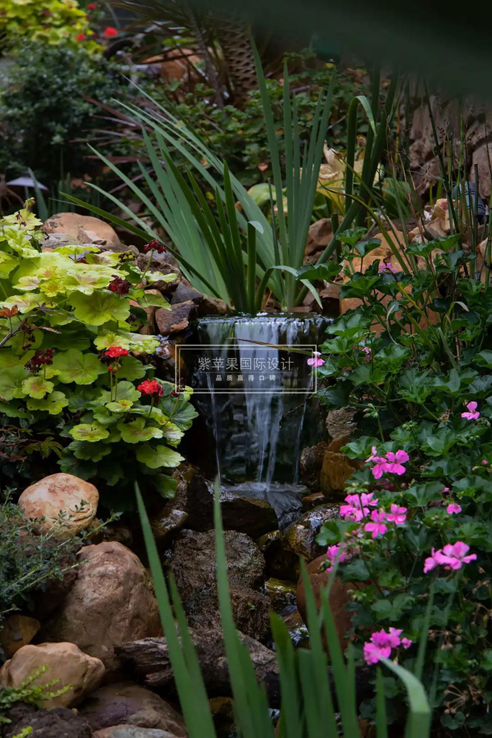 花園引入住宅的夢想,在入戶門與客廳之間得以實現(xiàn)。階梯式的高山流水景觀,恰如其分的體現(xiàn)著美式風格對自然的理解——自由,將四季的美都藏入這小眾的美式花園里。