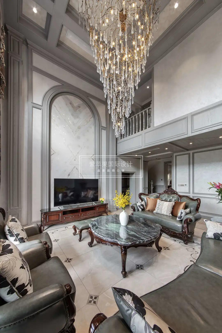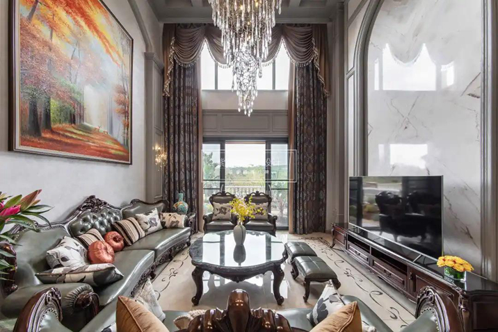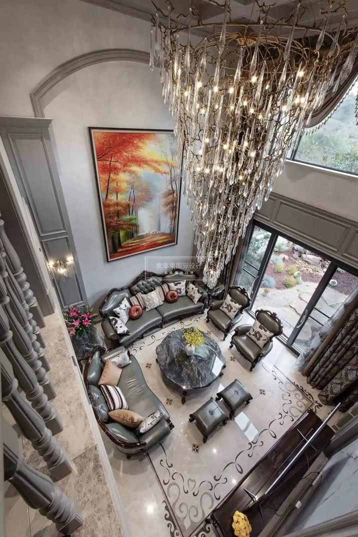 挑空客廳,是別墅獨特的體現(xiàn),現(xiàn)代設計手法的復古華麗的吊燈點綴,無論是從下往上看,還是從上往下看,都有強大的沖擊感,讓整個空間更富有層次。